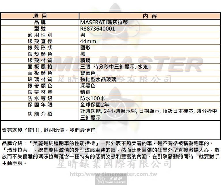 2.MASERATI-瑪莎拉蒂手錶-台灣第三家販售實體通路商