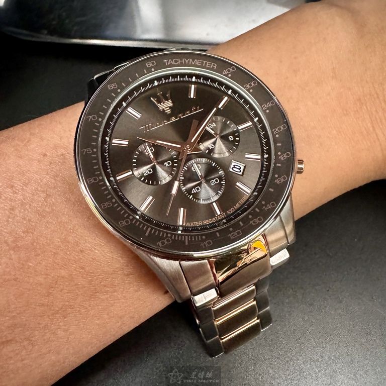 MASERATI手錶,編號R8873640021,44mm古銅色錶殼,金銀相間錶帶款