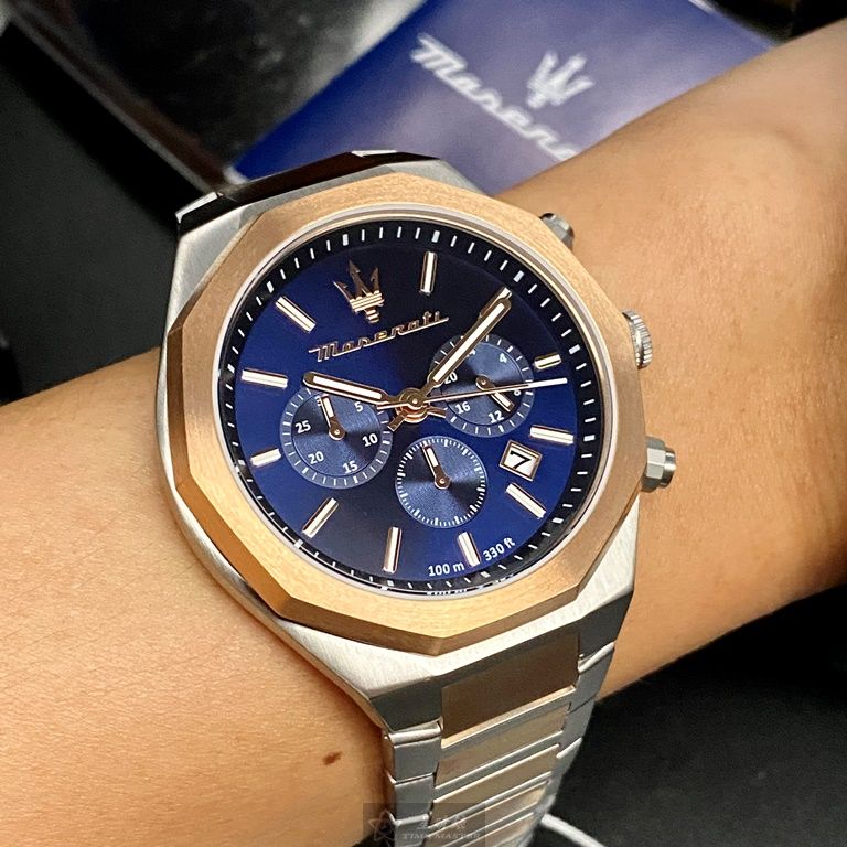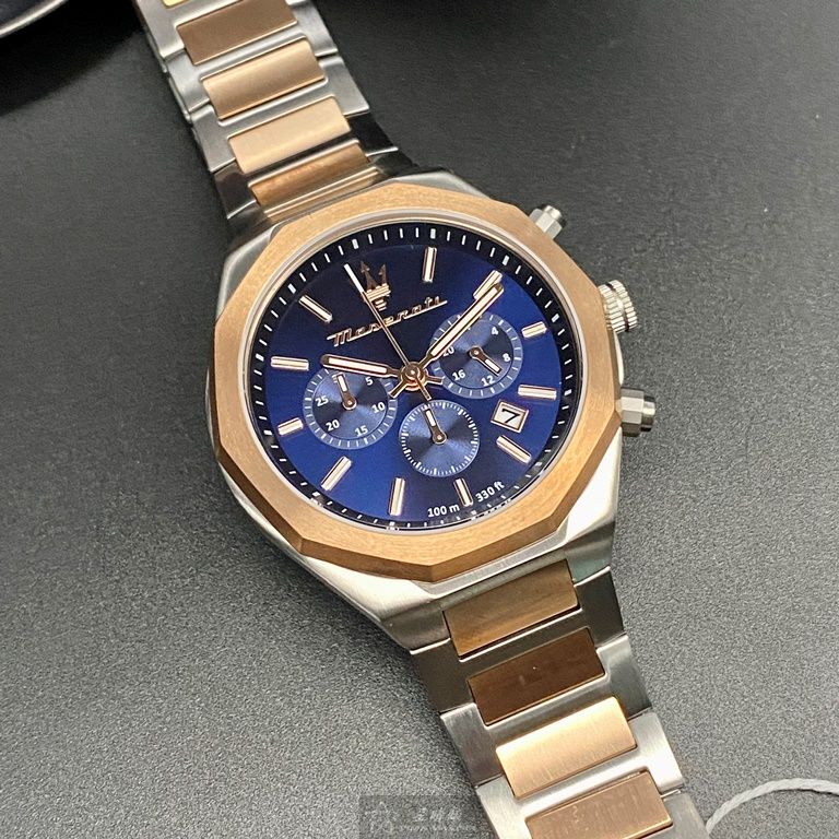 MASERATI手錶,編號R8873642002,46mm玫瑰金錶殼,金銀相間錶帶款