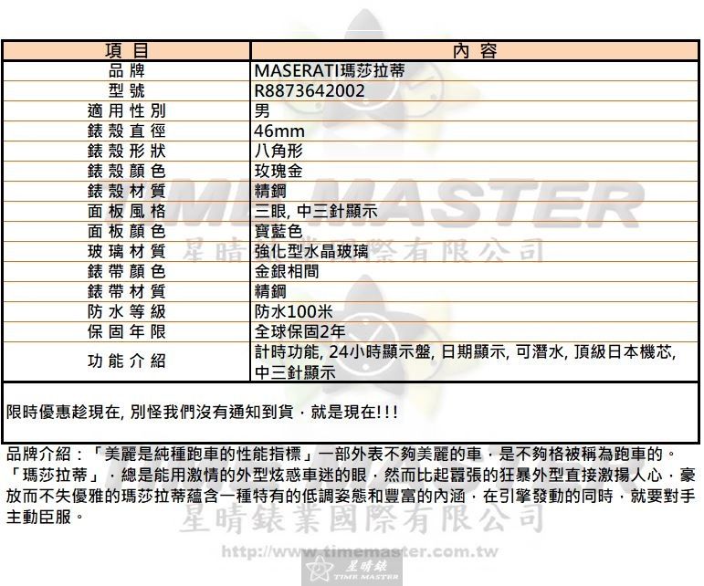 2.MASERATI-瑪莎拉蒂手錶-台灣第三家販售實體通路商