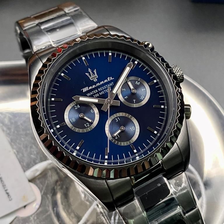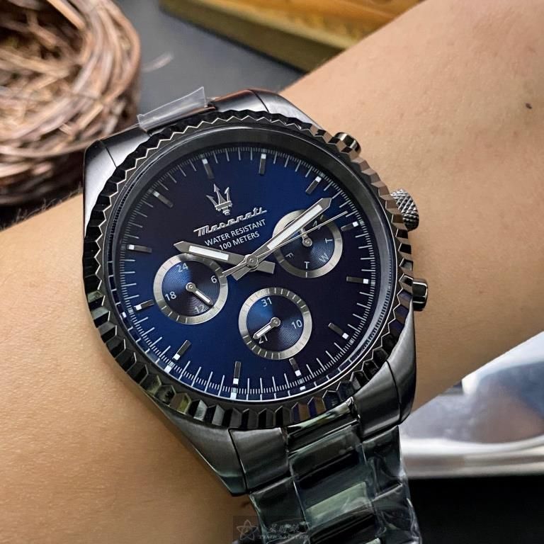 MASERATI瑪莎拉蒂男錶,編號R8853100019,42mm槍灰色錶殼,黑灰色錶帶款