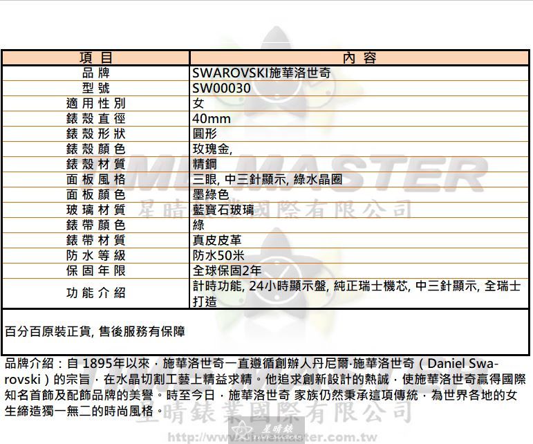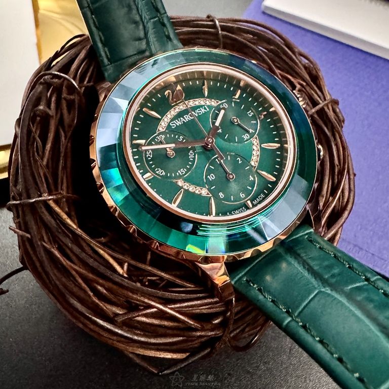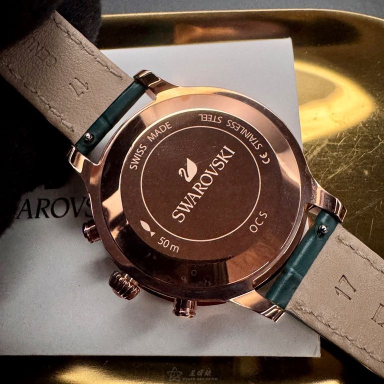 SWAROVSKI手錶,編號SW00030,40mm玫瑰金,錶殼,綠錶帶款
