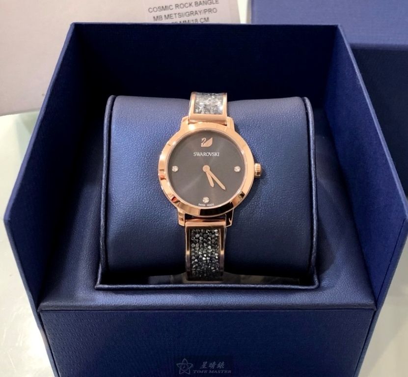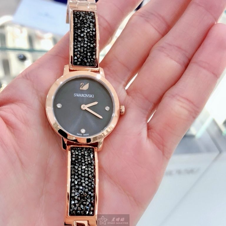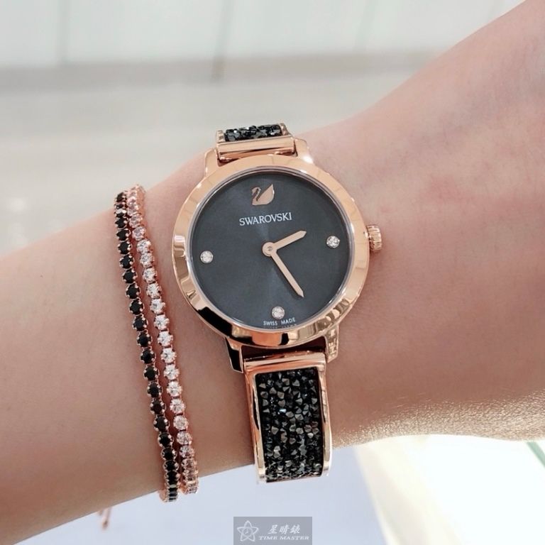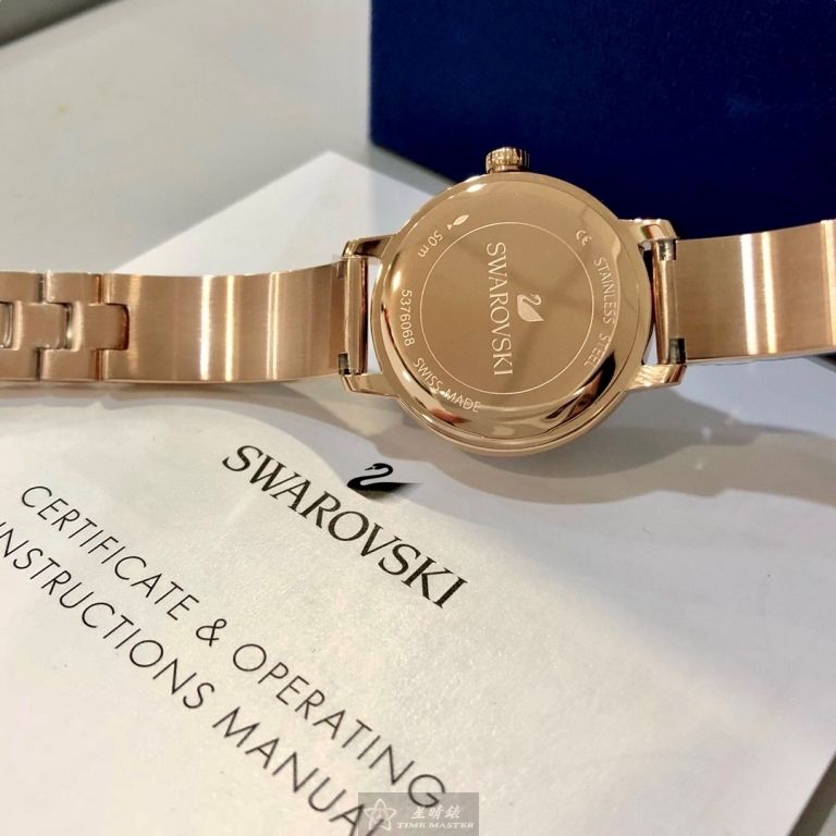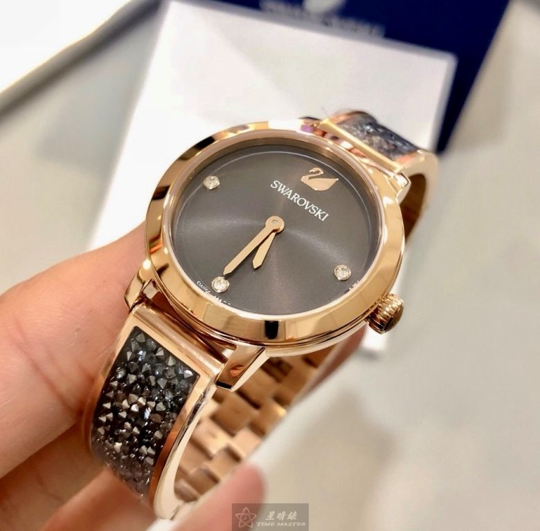 SWAROVSKI手錶,編號SW00039,30mm玫瑰金圓形精鋼錶殼,鐵灰色簡約, 中二針顯示錶面,玫瑰金色精鋼錶帶款