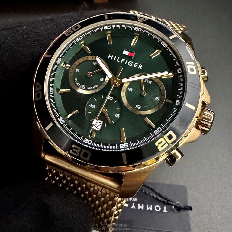星晴錶業呈現Tommy Hilfiger湯米希爾費格TH00054男錶,設計穩重而細膩,適合日常與正式場合佩戴。 採用精鋼圓形錶殼與金色米蘭錶帶,散發低調奢華感,質感明顯高於同價位商品。 錶面墨綠色搭配三眼設計與中三針顯示,功能完整又易於閱讀,實用性強。 石英機芯提供穩定走時與高精準度,即使日常使用也能保持準時。 強化型水晶玻璃面板耐刮耐磨,日常生活碰撞不易留下痕跡,安心使用。 配備計時功能、24小時顯示盤與日期顯示,滿足日常與工作多元需求。 防水50米設計,遇水無憂,兼顧生活便利與耐用性。 雖然價格不追求最低,但每一個細節都堅持品質精良,讓佩戴者感受誠意與用心。 全球保固2年,售後安心,品牌承諾與專業服務並行,使用更放心。 每一枚TH00054都是肩負時間責任的象徵,傳達成熟穩重與細膩品味。
