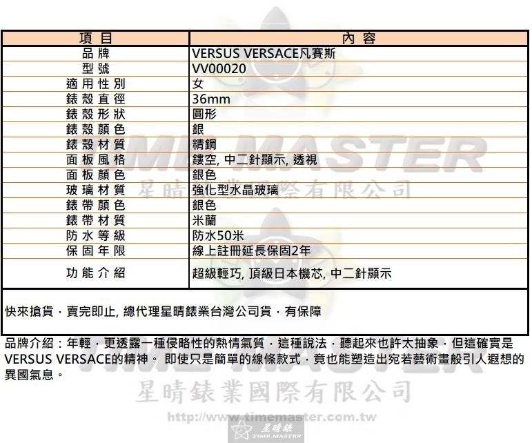 1.Versus Versace凡賽斯手錶-台灣獨家代理商