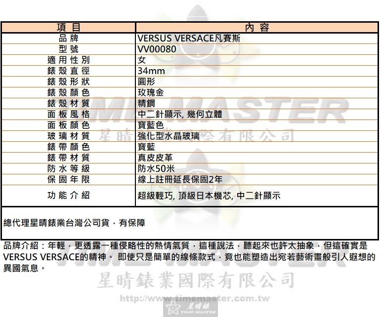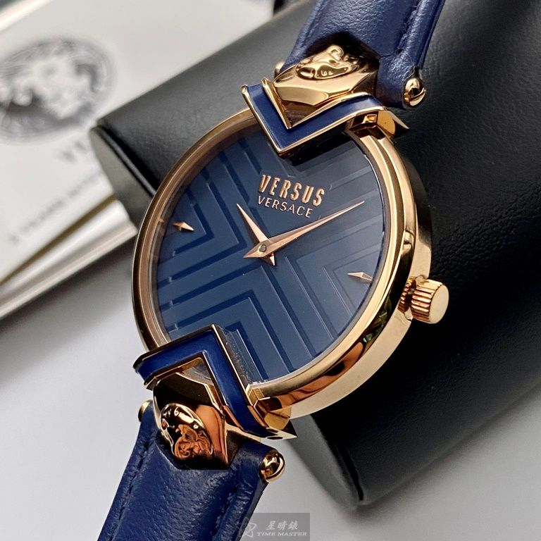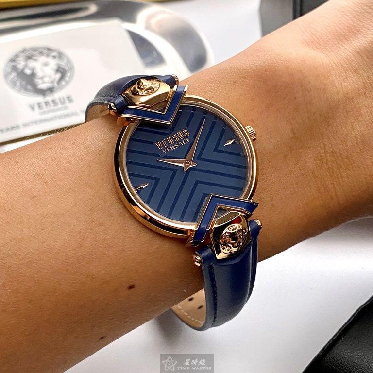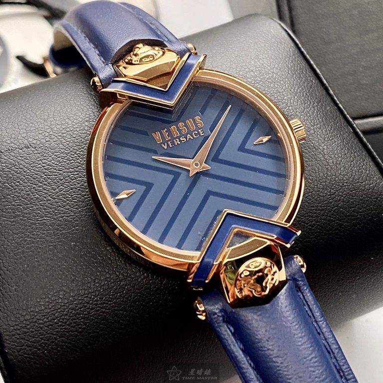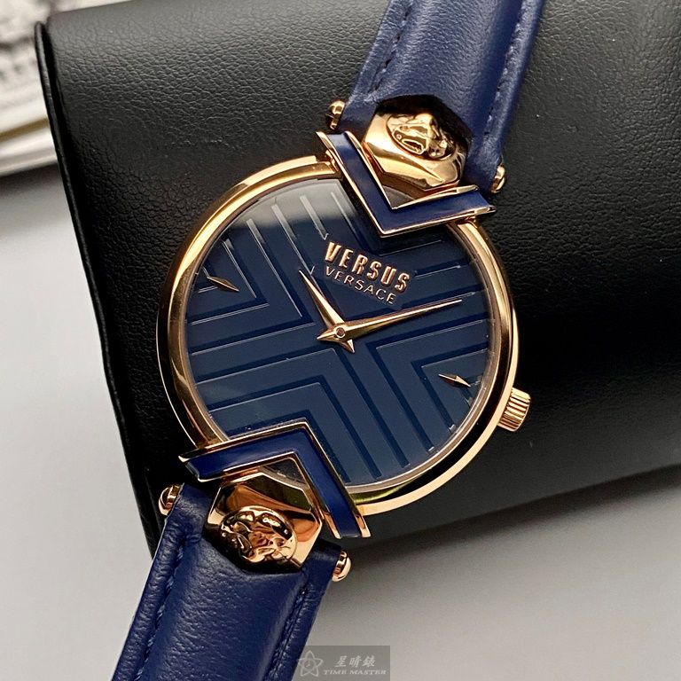 VERSUS VERSACE手錶,編號VV00080,34mm玫瑰金錶殼,寶藍錶帶款