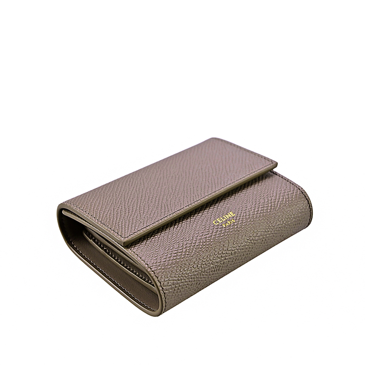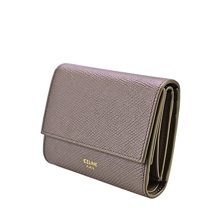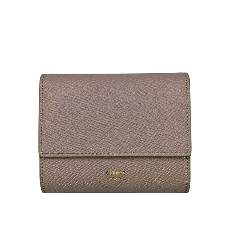 CELINE 經典粒面牛皮小款三折短夾 (鵝卵石色)