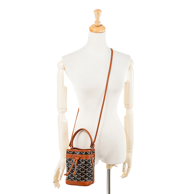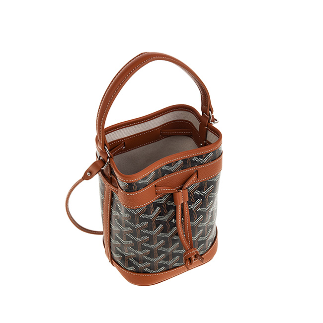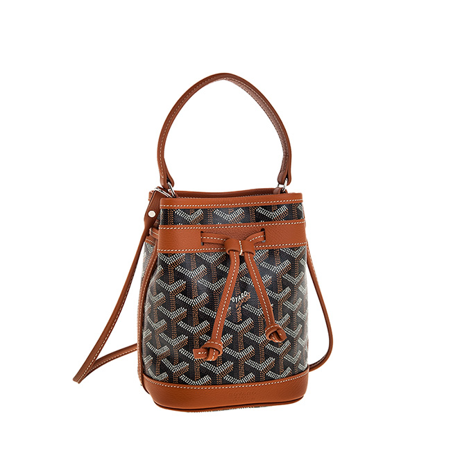 GOYARD 經典Y字老花LOGO防水帆布Mini Petit Flot 手提/斜背水桶包 (棕色)
