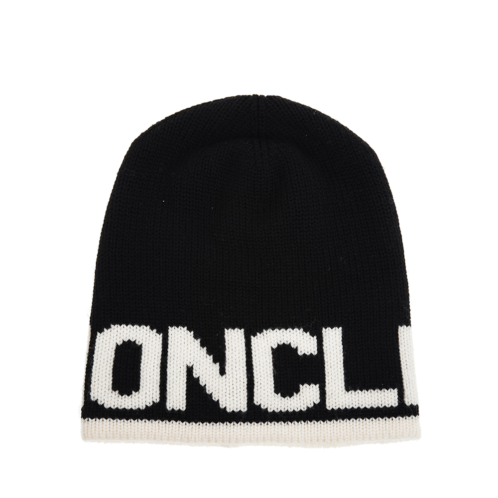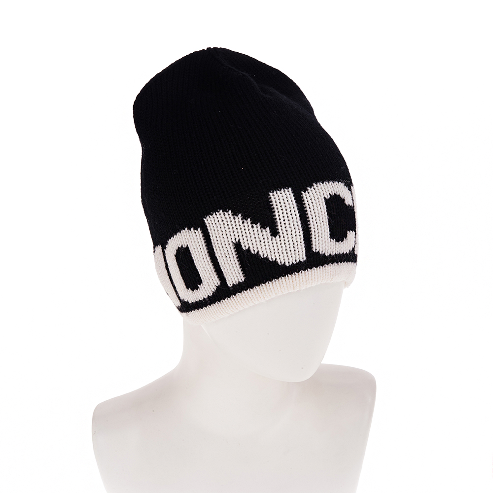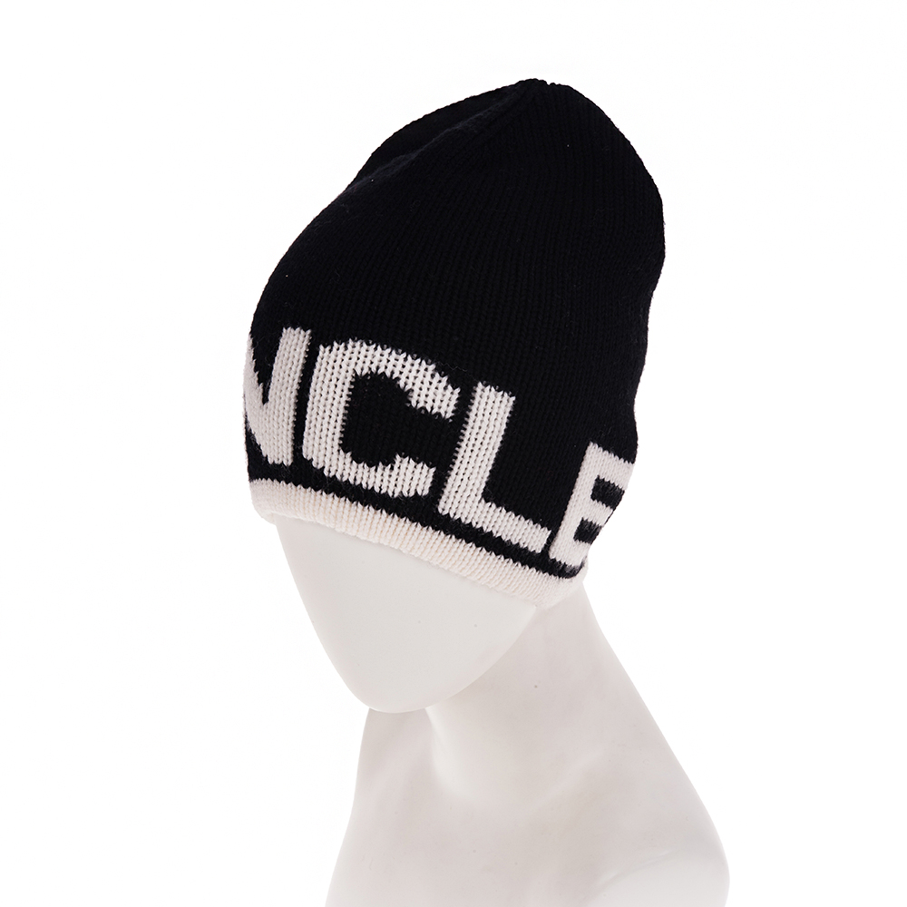 MONCLER 經典品牌英文字母LOGO羊毛帽 (黑色)