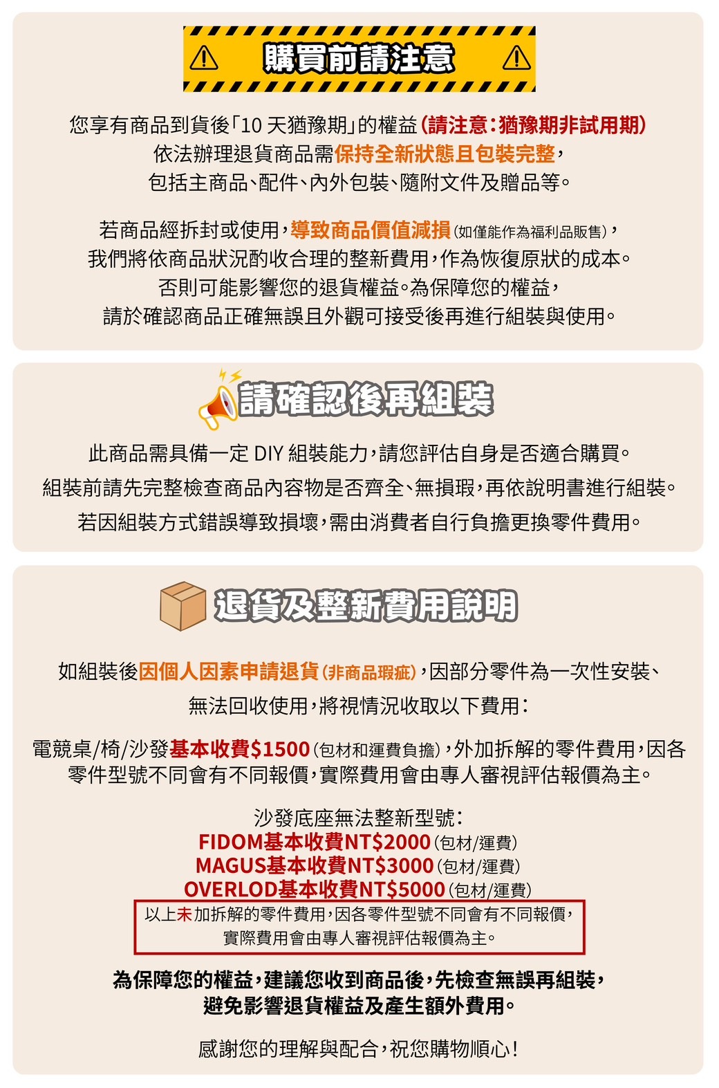 ⚠️大型商品到府組裝需當場確認商品是否有無瑕疵,避免售後爭議