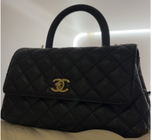 (卡片款)9.5新/A92990/Chanel cocohandle海軍藍荔枝牛皮金鍊肩背