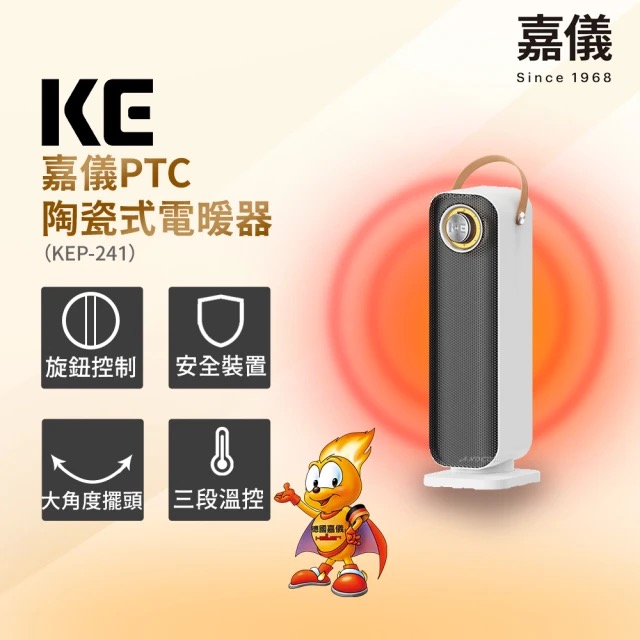 嘉儀強效熱能PTC陶瓷式電暖器 KEP-241(三段溫控/提把式設計/大角度擺頭)