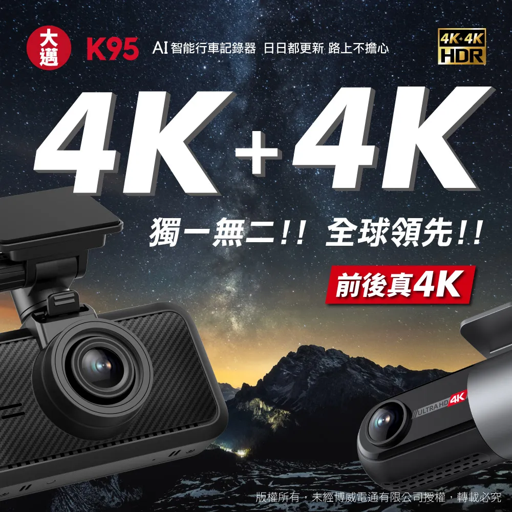K95 4K+4K 雙錄款 HDR 行車記錄器 (贈128G記憶卡)