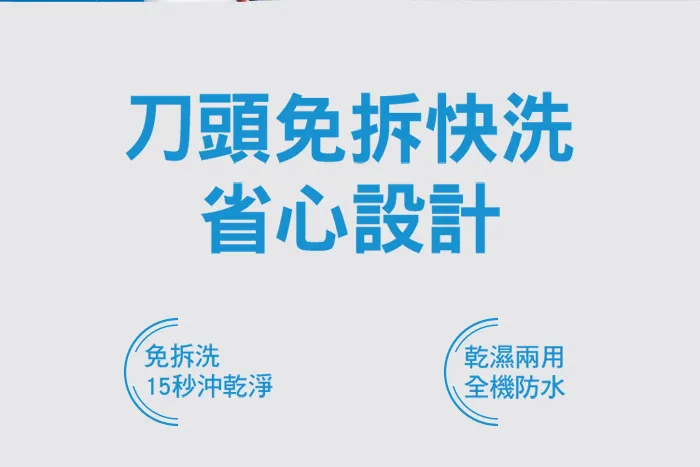 獨家設計:單向沖洗閥,免拆好洗科技 德國製造獨立浮動3刀頭:刮淨不同角度的鬍鬚 全新採用強韌玻璃纖維材質