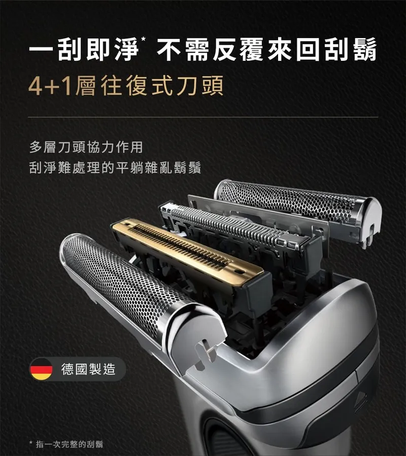 往復式4+1層刀頭 智能親膚 一刮即淨 諧振音波科技 震出鬍根