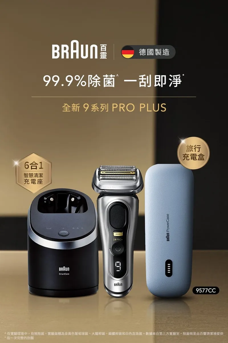 BRAUN 百靈9系列Pro+諧震音波電鬍刀/電動刮鬍刀 9577cc(內含充電清潔座+充電旅行盒)