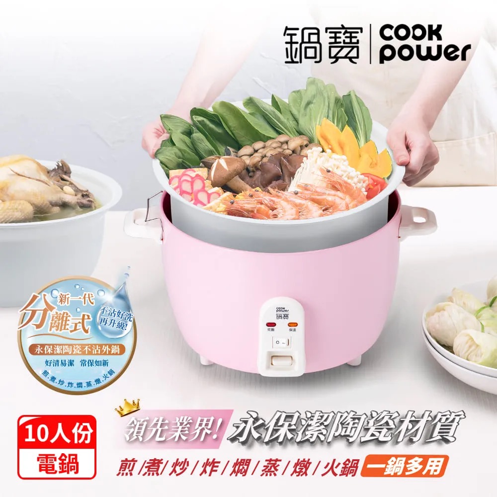 CookPower 鍋寶永保潔分離式陶瓷不沾電鍋-10人份-粉(ER-1070)