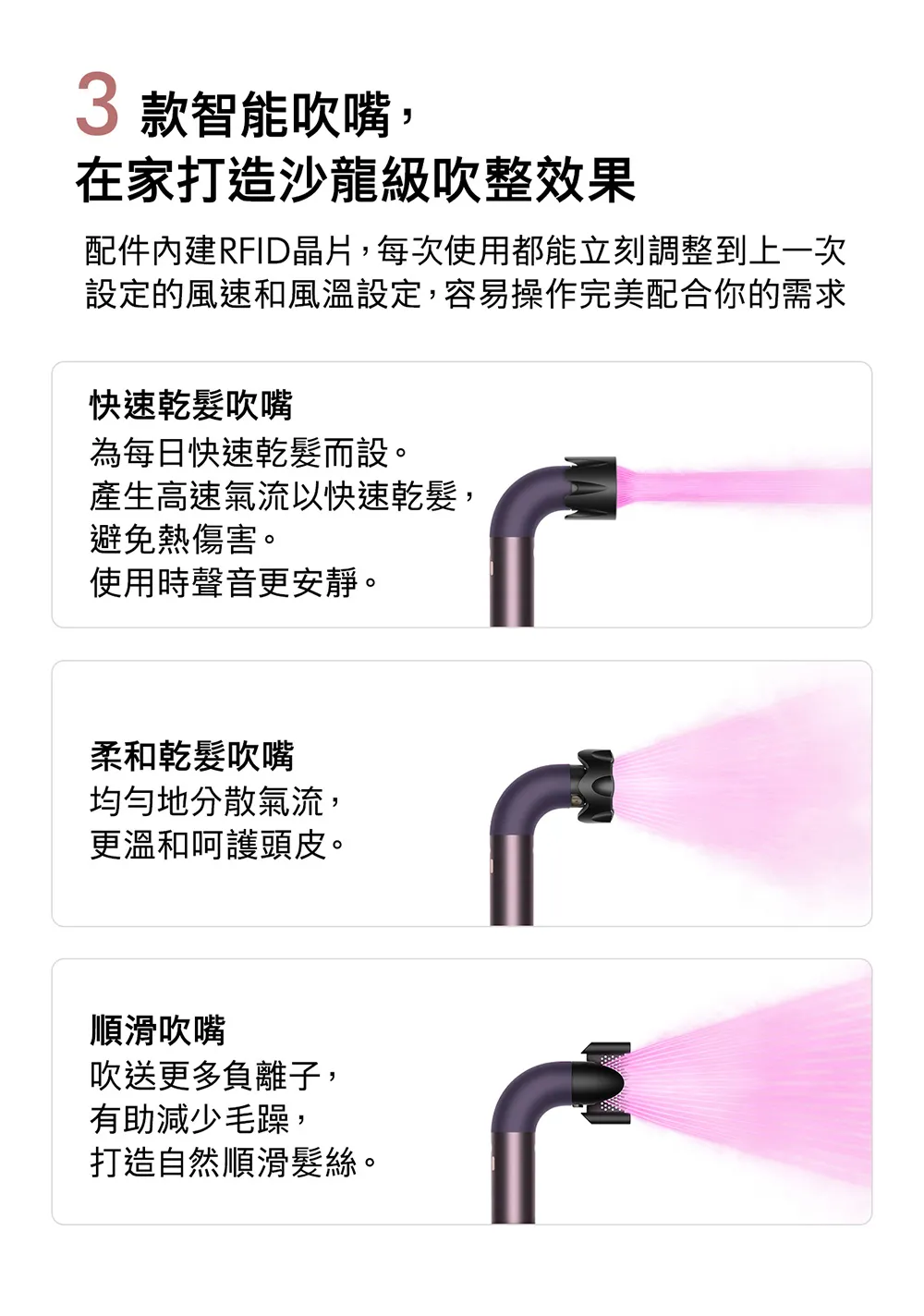 3種智能配件,能記住您的造型偏好,全新升級濾網,更耐用
