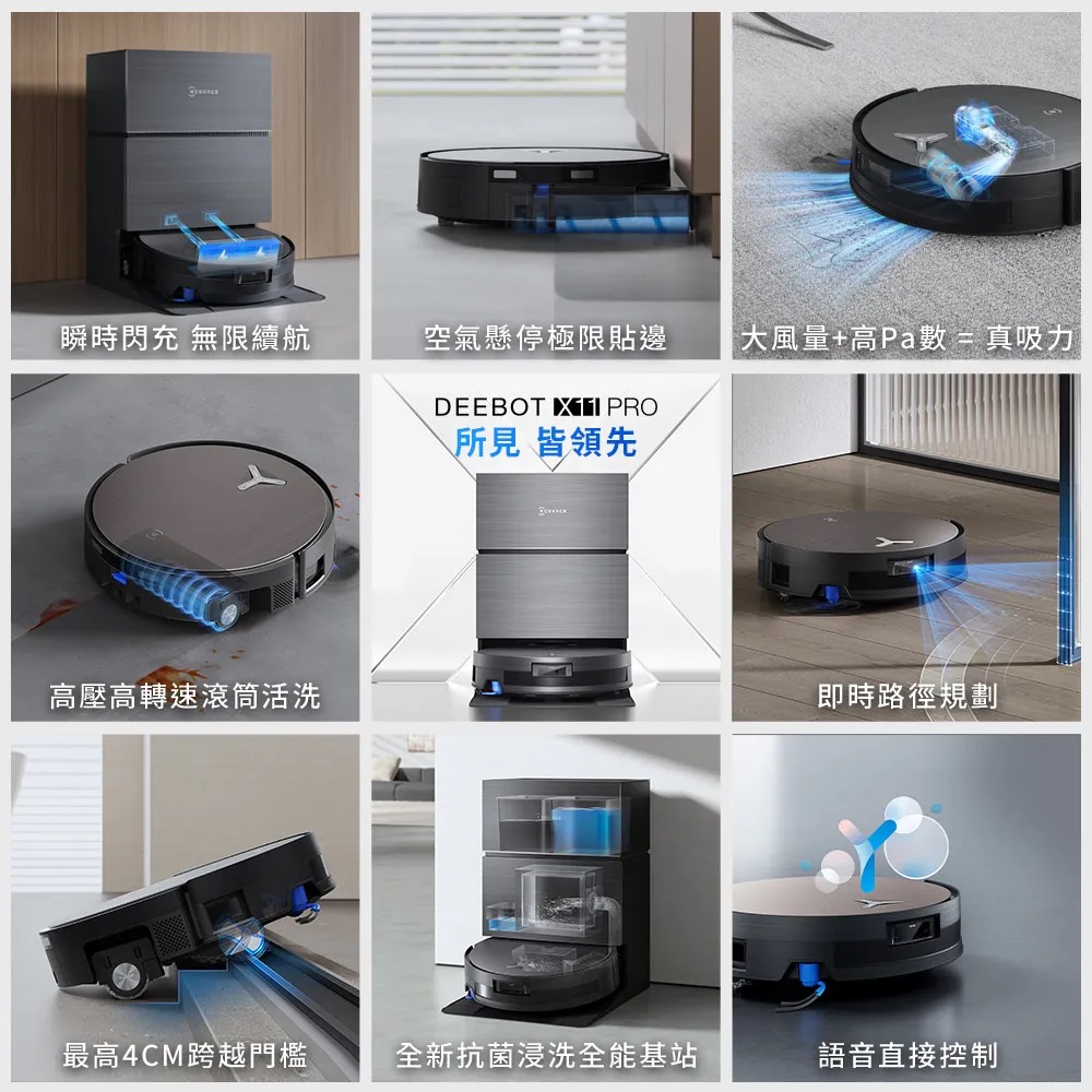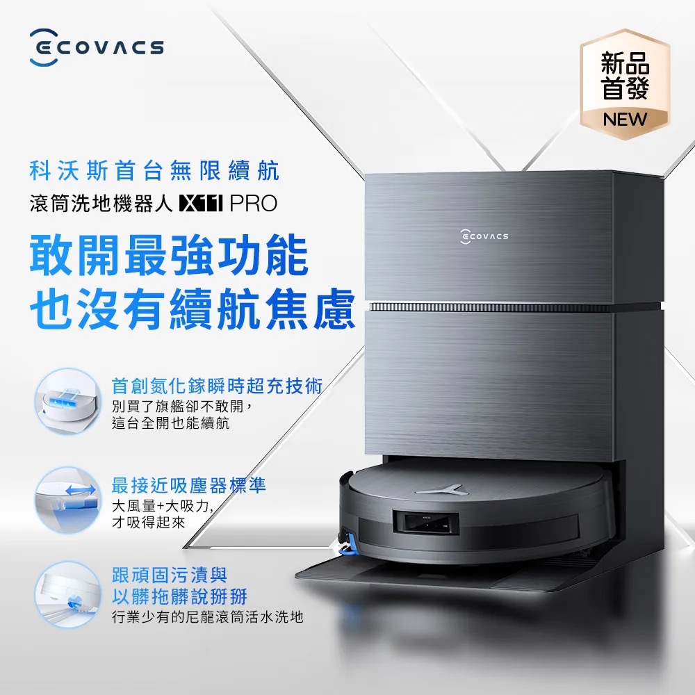 ECOVACS 科沃斯DEEBOT X11 PRO無限續航滾筒洗地機器人(氮化鎵瞬時閃充/GPT級語音控制/全能基站)