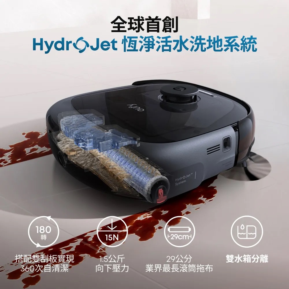 eufyOmni E25 自清潔掃拖一體全能機器人/掃地機器人(活水洗地/零纏繞伸縮滾刷/20000PA大吸力) Hydro Jet 恆淨循環系統 / DuoSpiral 雙旋零纏伸縮滾刷 自動集塵 / 自動補水 / 自動回收汙水 自動添加清潔液 / 自動洗拖布 / 自動熱風烘乾