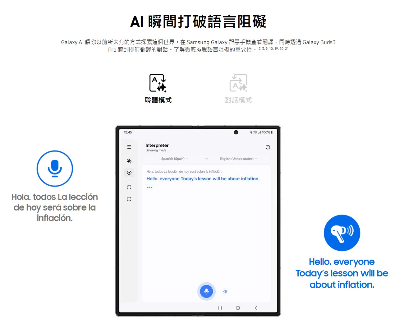 概覽 耳機重量 (g) 5.4 充電盒重量 (g) 46.5 耳機電池容量 (mAh,典型值) 53.0 充電盒電池容量 (mAh,典型值) 515 影音 麥克風數 6 喇叭 升級單體雙喇叭 環境音效 有 主動式降噪調節 有 主動式降噪 有 語音偵測 (Voice Detect) 有 360度環繞音效 有 警笛偵測 有 Audio Codec AAC, SBC, SSC(Samsung Seamless Codec), SSC-UHQ Adaptive EQ 有 Adaptive ANC 有 超寬頻 有 連結性 藍牙版本 Bluetooth v5.4 藍牙規範 A2DP, AVRCP, HFP, PBP, TMAP LE Audio 有 Auto Switch 有 感應器 加速度計, 陀螺儀, 霍爾磁電感應器, 壓力感應器, 趨近感應器, 觸控感應, 語音擷取單元 實體規格 耳機尺寸 (長x寬x高,mm) 18.1 x 19.8 x 33.2 耳機重量 (g) 5.4 充電盒尺寸 (長x寬x高,mm) 48.7 x 58.9 x 24.4 充電盒重量 (g) 46.5 耐用性 IP57 電池 耳機電池容量 (mAh,典型值) 53.0 充電盒電池容量 (mAh,典型值) 515 服務與應用程式 Samsung Find 有 Bixby 語音喚醒 有 頸部伸展提醒 有 語音指令 有