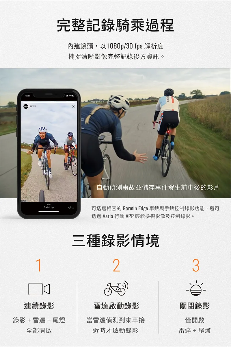 GARMIN Varia RCT715 智慧雷達尾燈行車記錄器 (自行車尾燈 / 警示雷達 / 1080P廣角行車記錄)