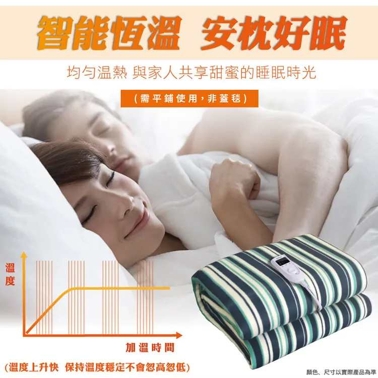 HERAN 禾聯高級親膚絨布 雙人電熱毯12N2-HEB 五段式溫控 恆溫設計 可洗衣機清洗 方便清潔 八小時自動斷電保護設定