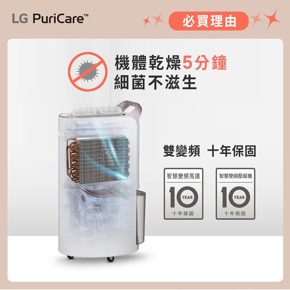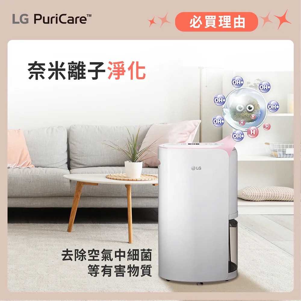 LG 樂金PuriCare UV抑菌 WiFi變頻除濕機-17公升/粉紅MD171QPE0