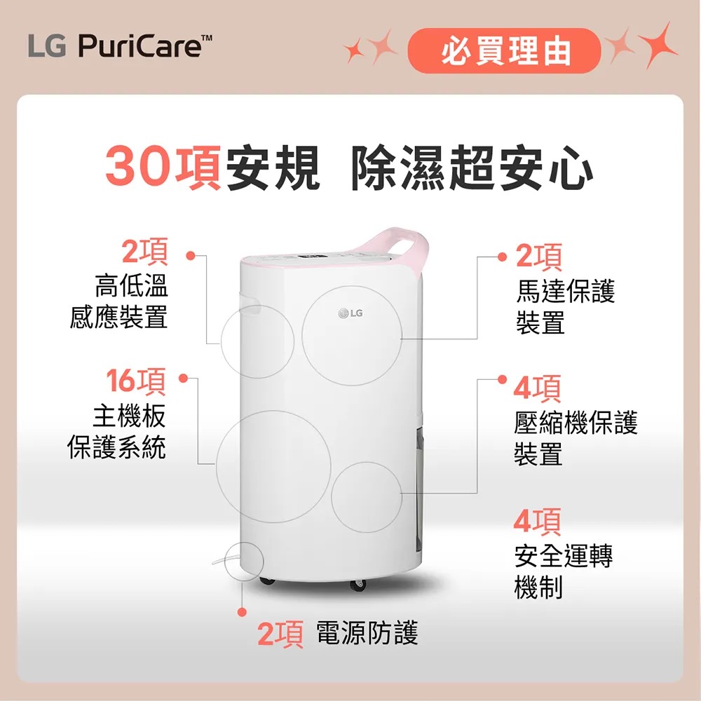 LG 樂金PuriCare WiFi變頻除濕機-粉紅/16公升(MD161QPK3)