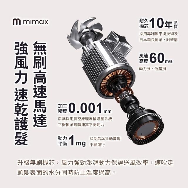 mimax 米覓高速摺疊負離子吹風機 負離子 溫控 方便收納 附收納袋 110v電壓 適合所有髮質 可折疊