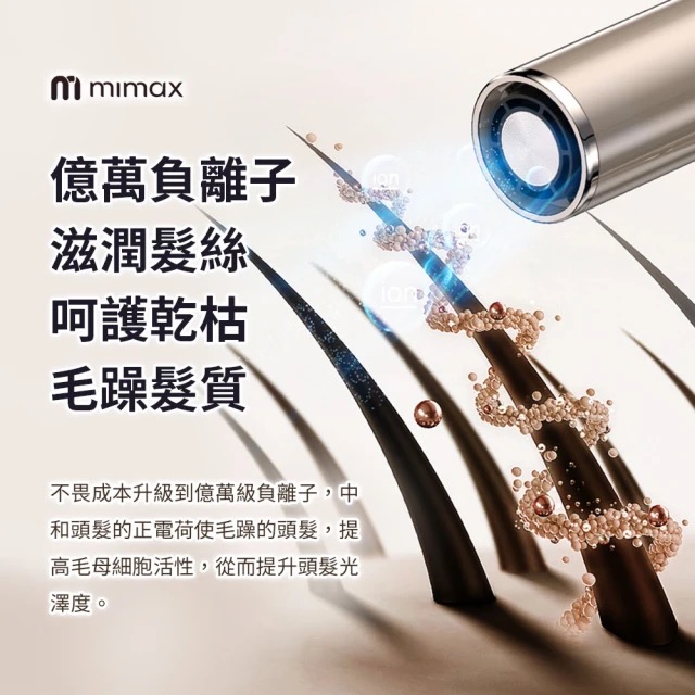 億萬級負離子 提升頭髮光澤度 三種吹嘴 日常造型變化多樣 三色LED智慧光圈 隨溫度變化