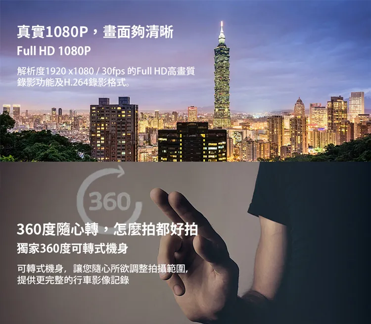 • Sony低照度CMOS感光元件,Full HD 1080P/30fps