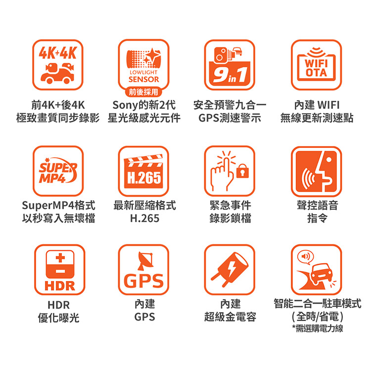 SuperMP4以秒寫入無壞檔 WIFI OTA無線更新測速點 內建二合一駐車模