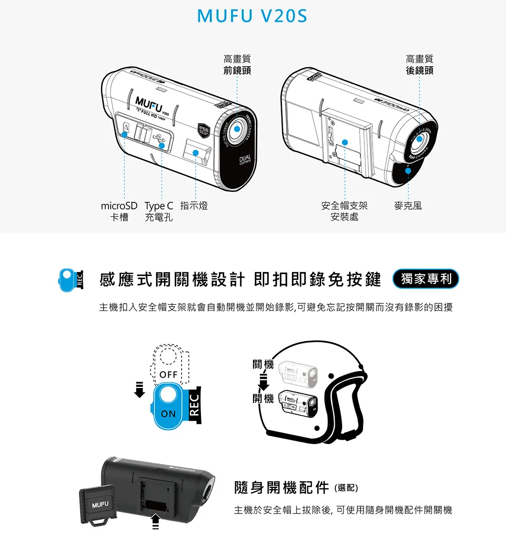 MUFUV20S雙鏡頭機車行車記錄器-贈64GB記憶卡