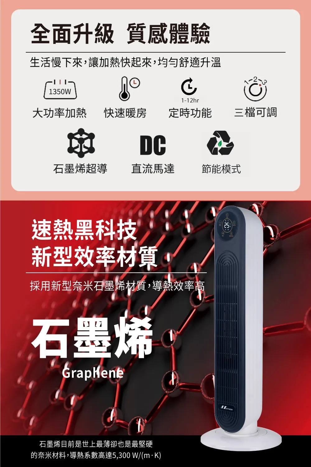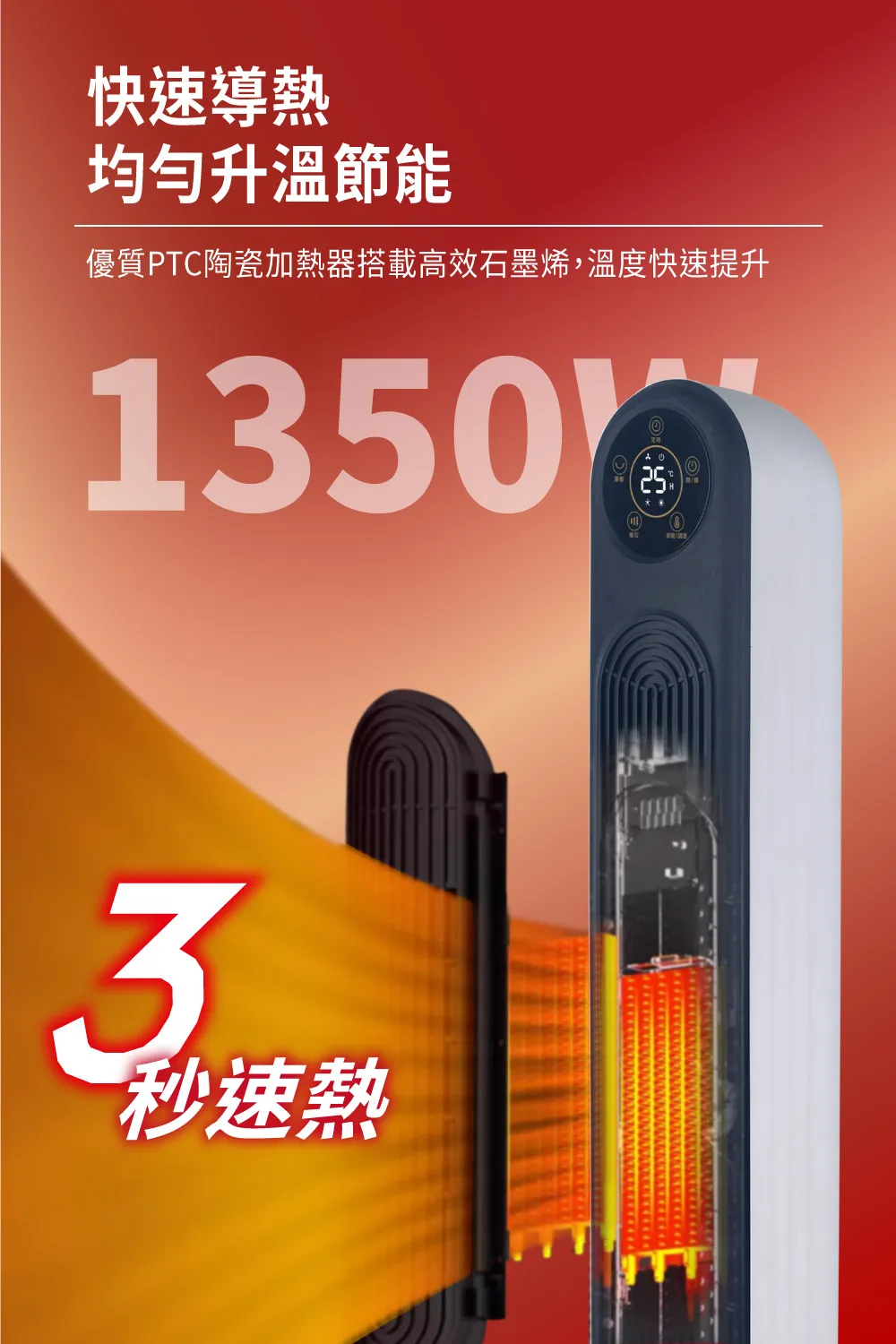 NORTHERN 北方-石墨烯陶瓷遙控電暖器(PTC155S) 新黑科技石墨烯超導體 節能模式,自動調整電熱溫度 可預約1-12小時自動關機