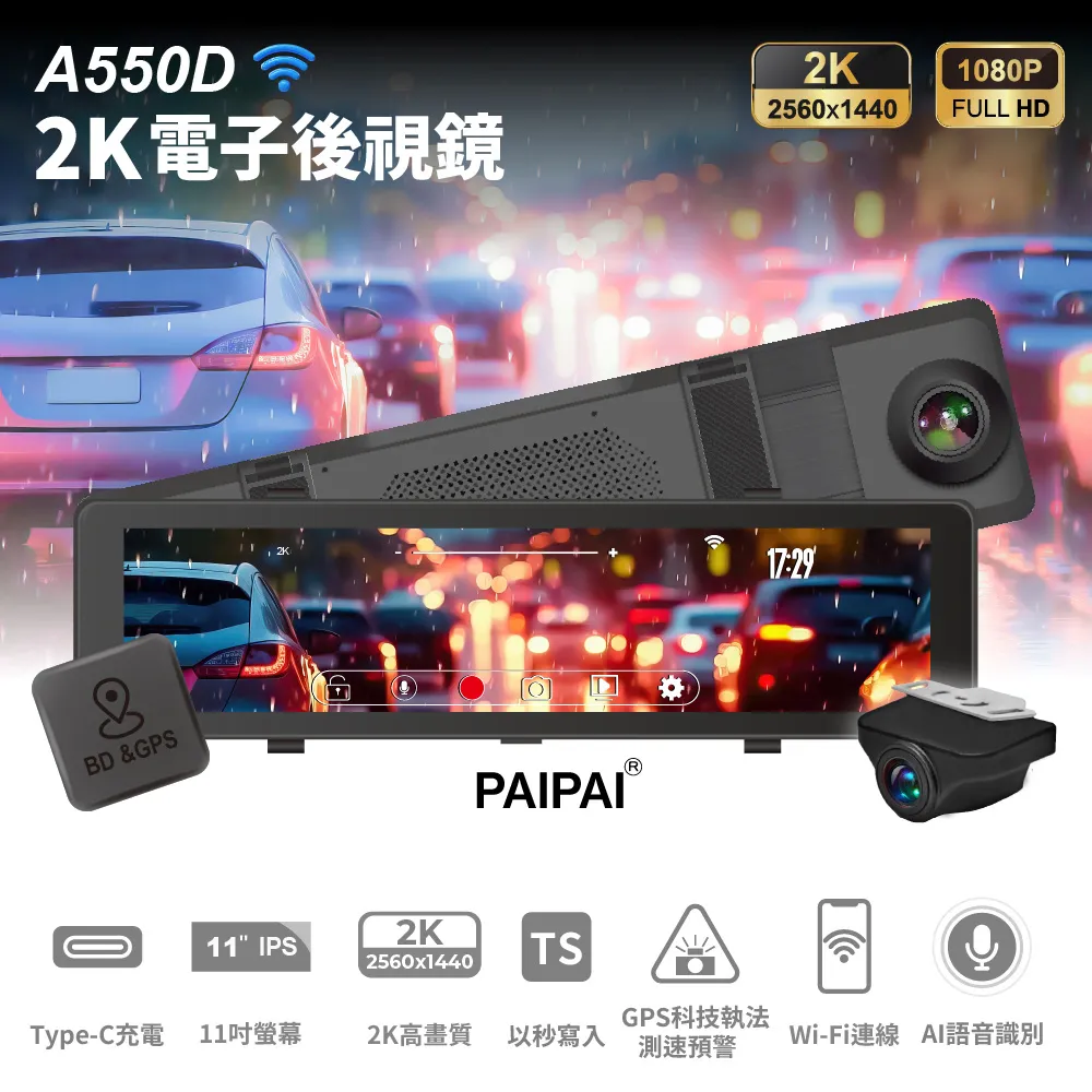 PAIPAI 拍拍2024新機上市2K星光級WIFI+GPS雙鏡頭A550D流媒體行車記錄器
