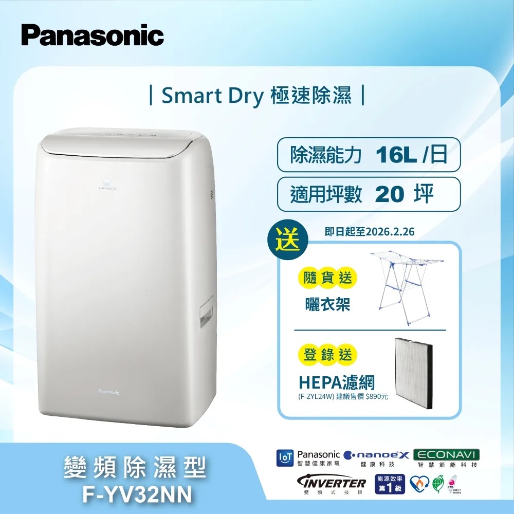 Panasonic 國際牌16公升高效型變頻除濕機 F-YV32NN