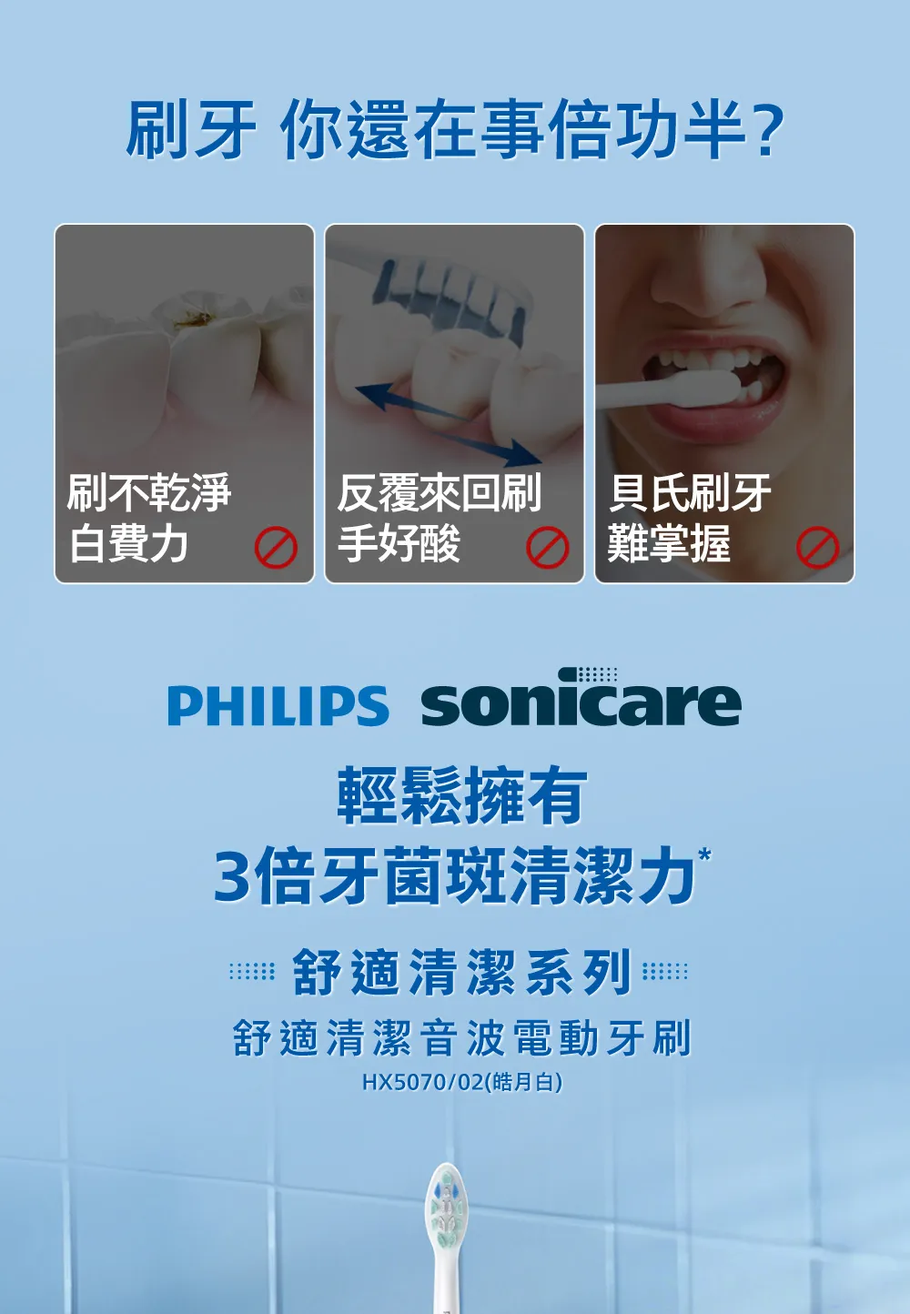 PHILIPS 飛利浦官方直營 Sonicare舒適清潔音波電動牙刷HX5070/02(皓月白)