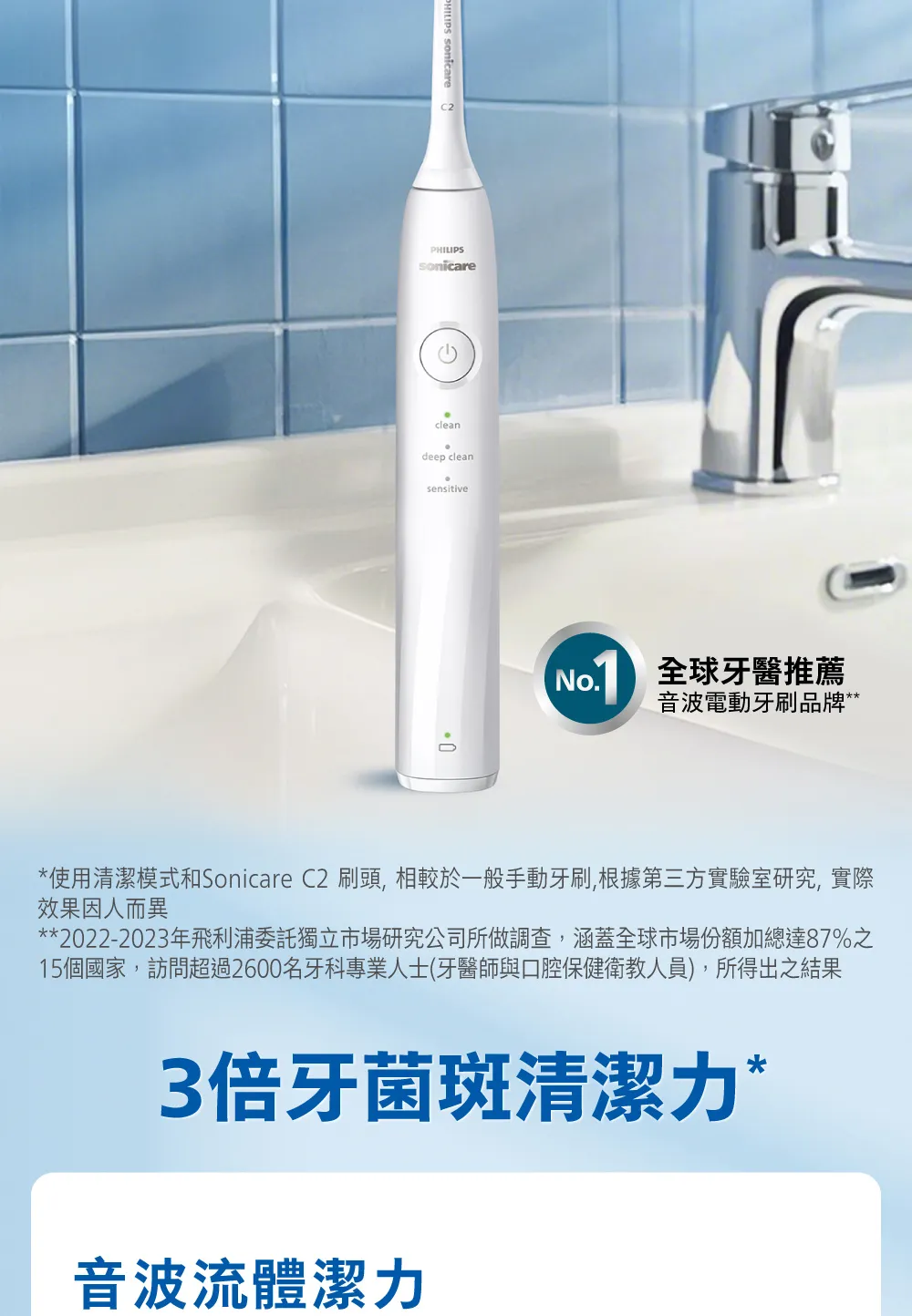 • 清潔/深度清潔/敏感 3種刷牙模式