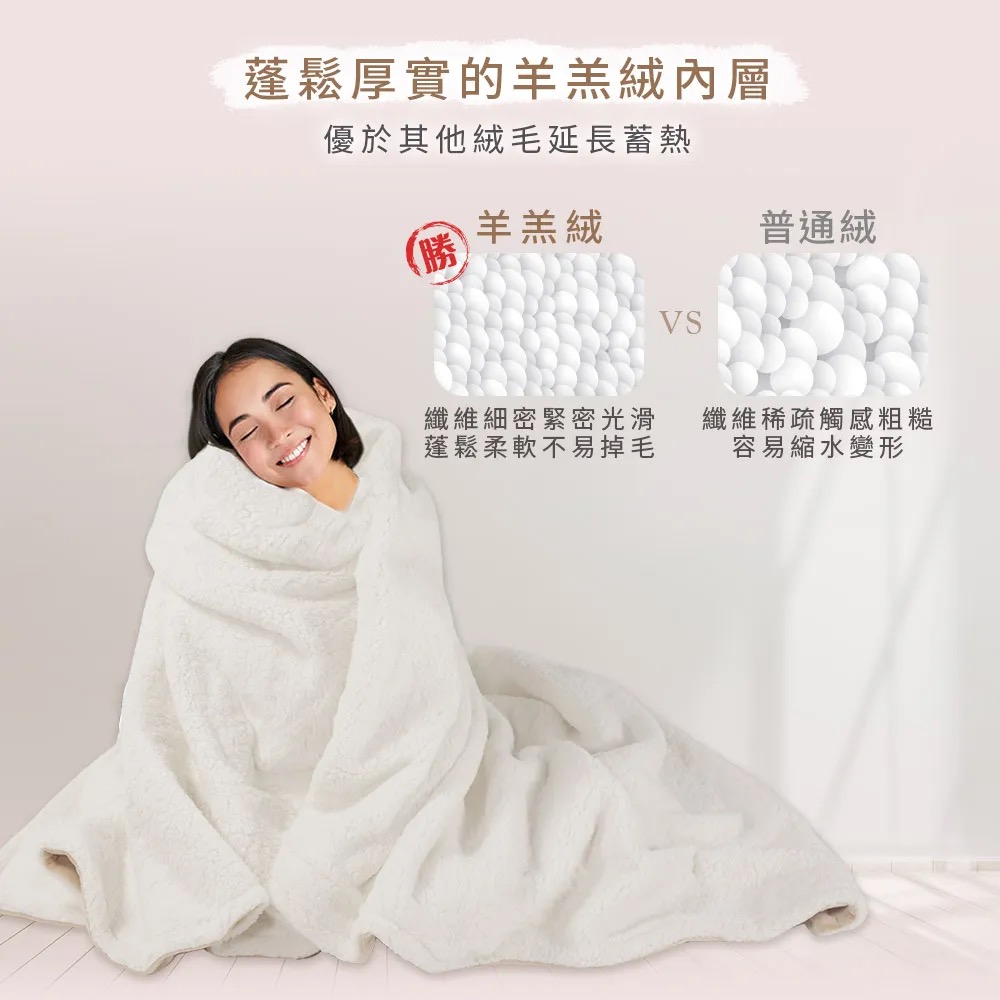 法蘭絨x羊羔絨,雙面親膚觸感 可披蓋可鋪墊,一毯多用 9段溫控+3/10H兩段定時