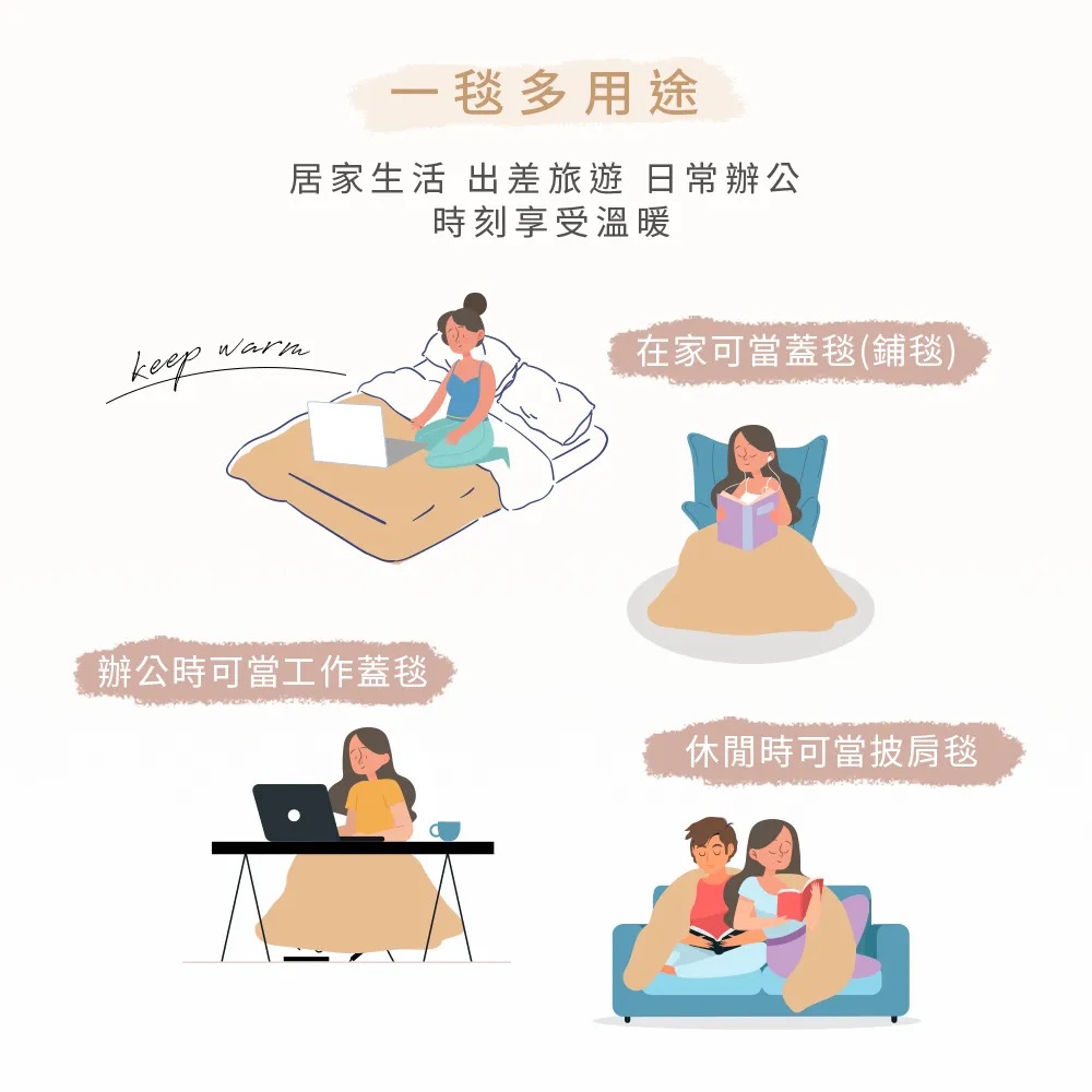 • 可披蓋可鋪墊,一毯多用