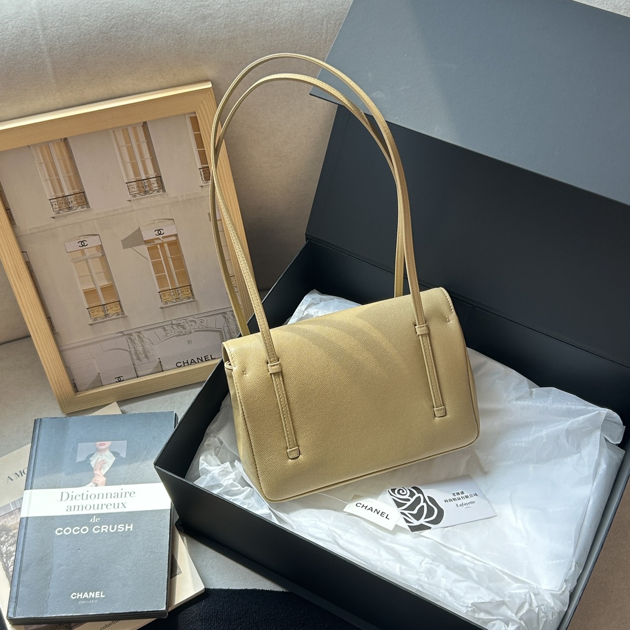 CHANEL 26S PREPPY COCO 奶茶色小型腋下包