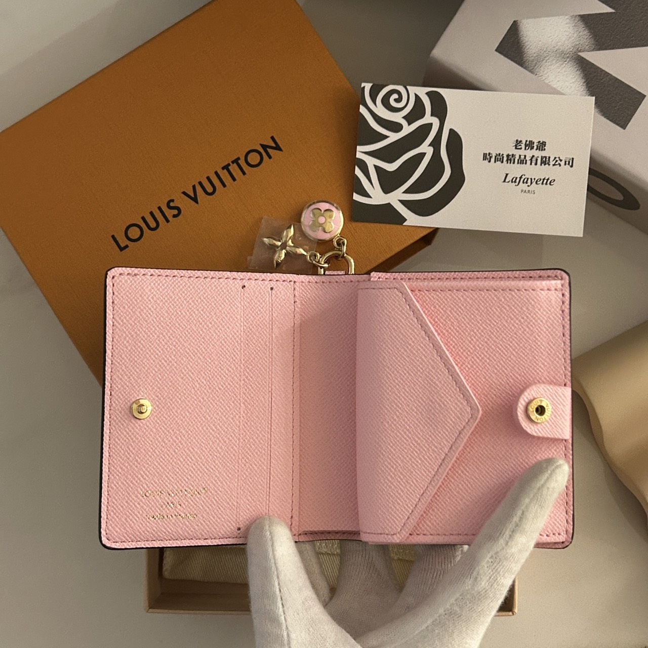 LOUIS VUITTON Charms 粉色零錢袋內裡兩折短夾