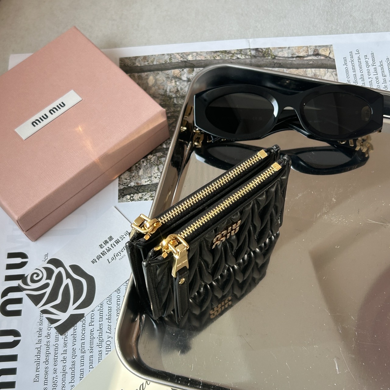 MIUMIU Matelassé 兩折雙拉鏈黑色短夾