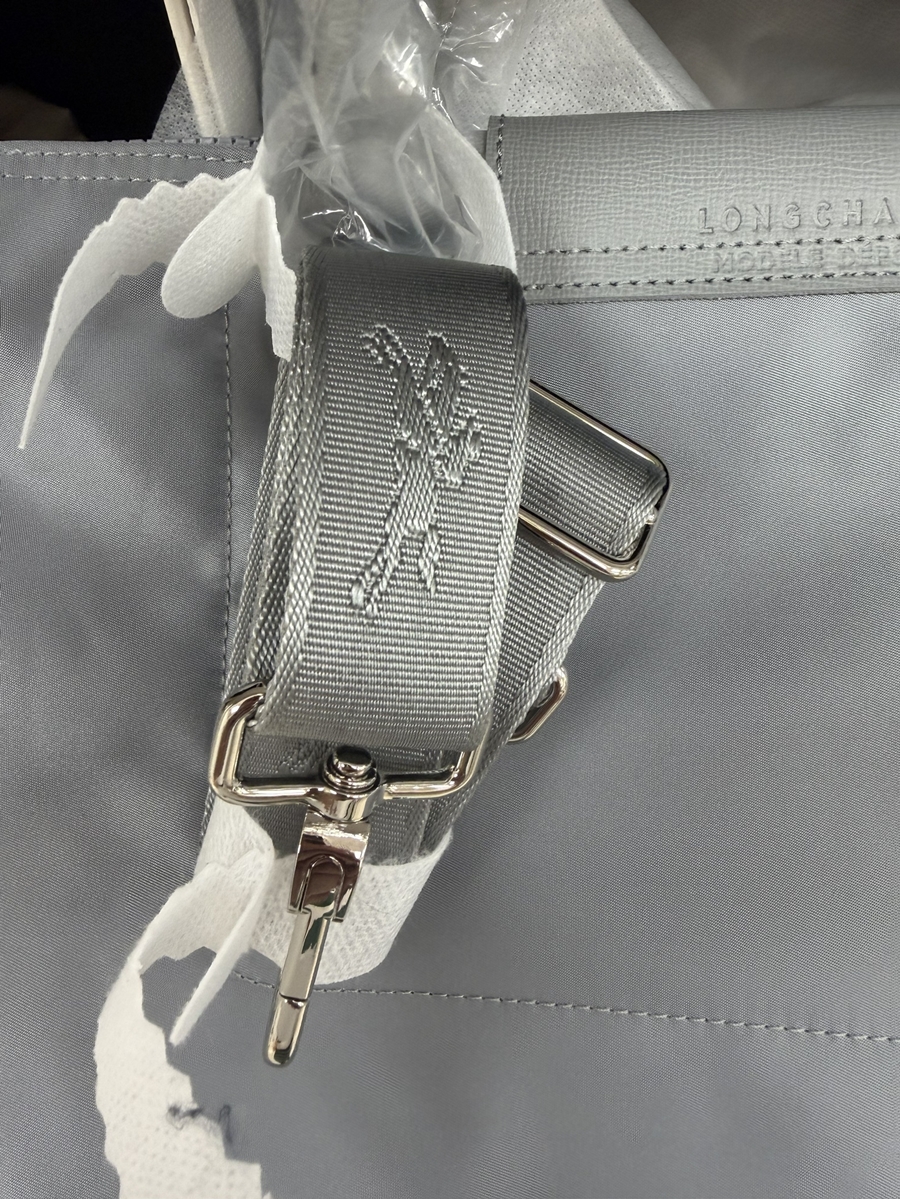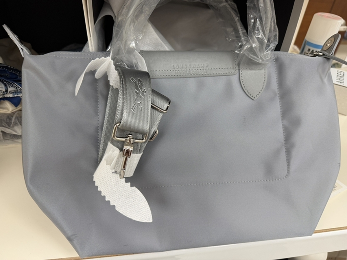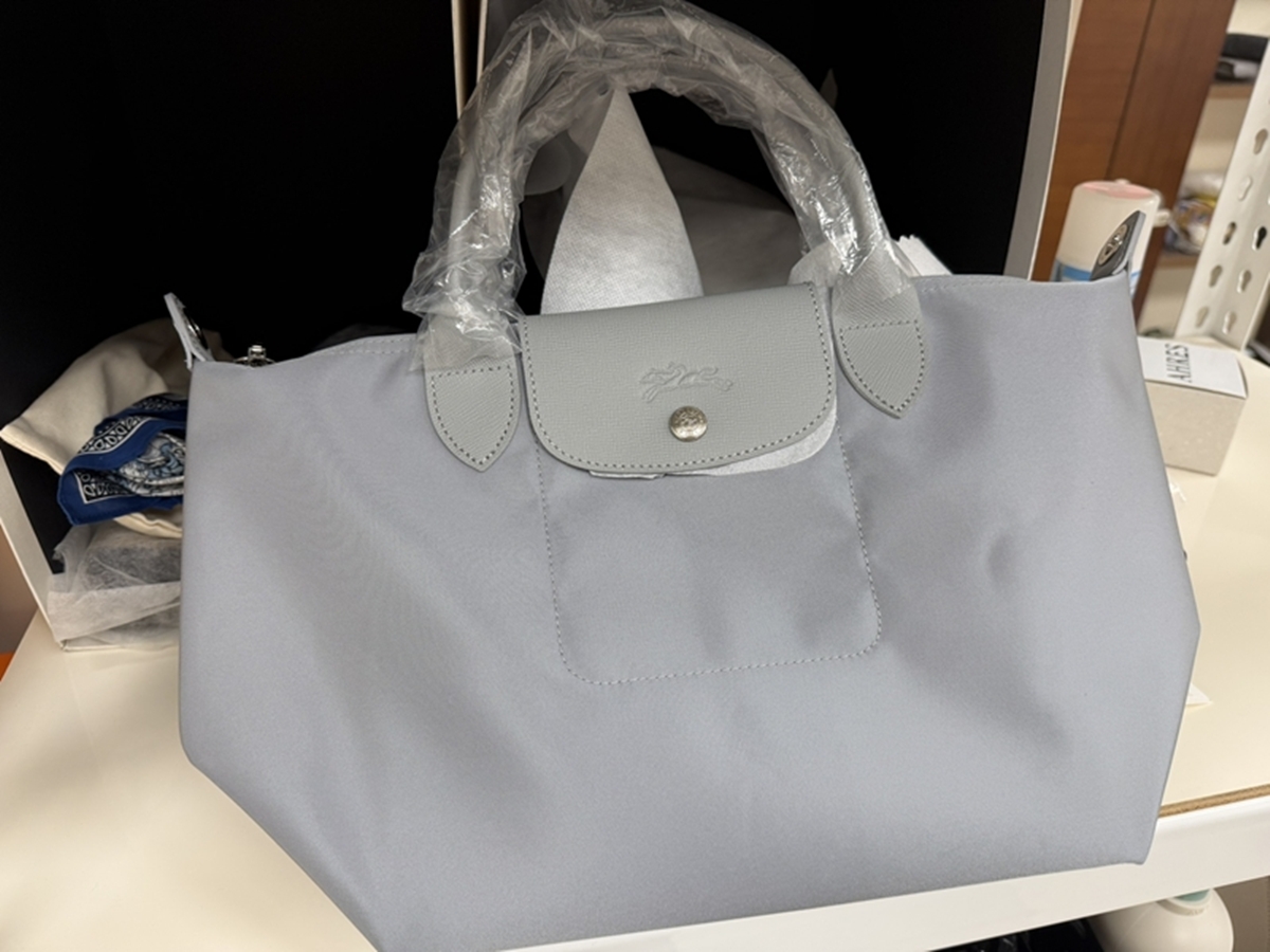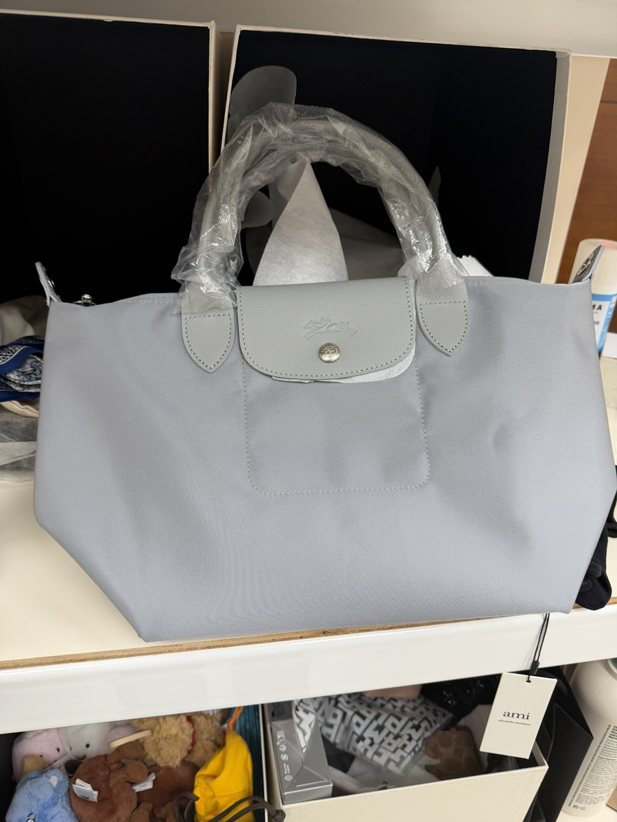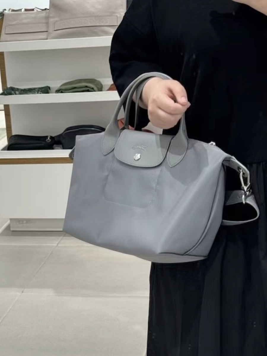 【現貨】Longchamp 加厚尼龍短柄手提包 藍灰色 S號 A4 勉強剛剛好可以唷~ 長夾沒有問題~👍 內有一個暗袋長背帶可拆可調 📐S:23x25x16cm