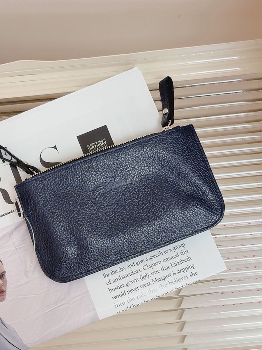 【現貨】Longchamp 雙層拉鍊手拿包 藍色