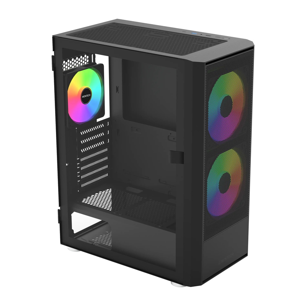 【MONTECH】君主 X2 Plus 側掀式玻璃機殼 (ATX/Type-C/內含三風扇) 黑色