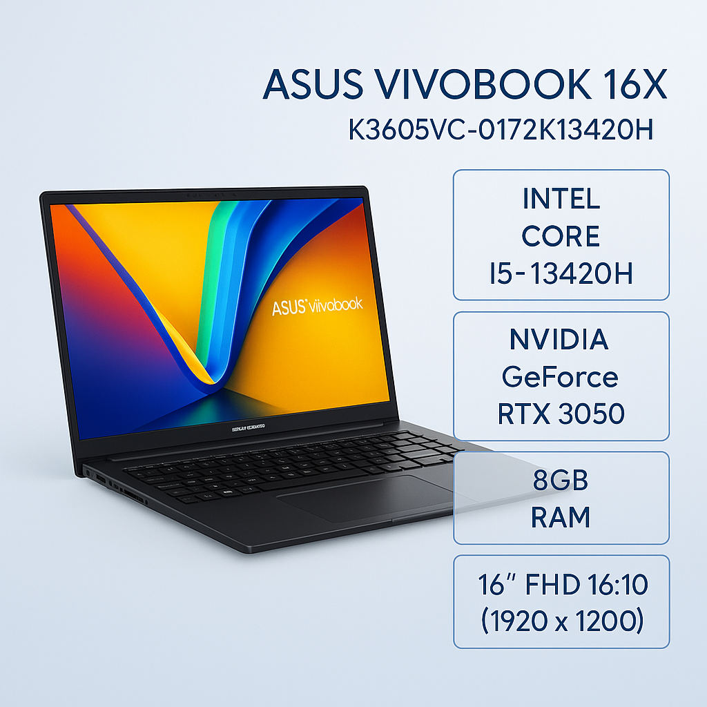 ⭐️ASUS VivoBook 16X K3605VC-0172K13420H 搖滾黑 華碩13代大視界效能筆電/i5-13420H/RTX3050 4G/8GB/512GB PCIe/16吋 16:10 FHD+ 144Hz/W11⭐️