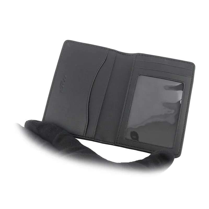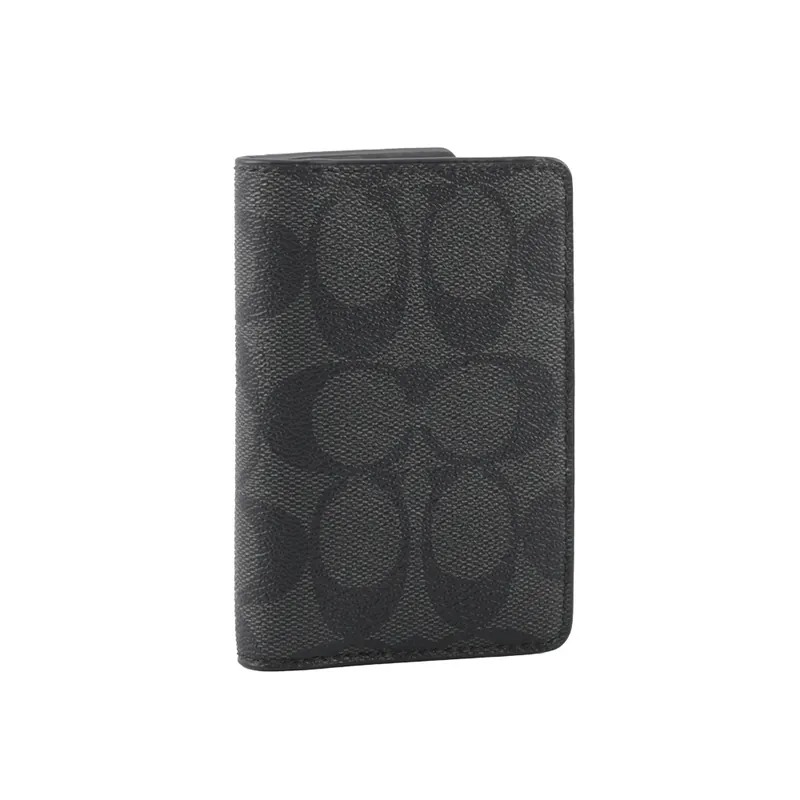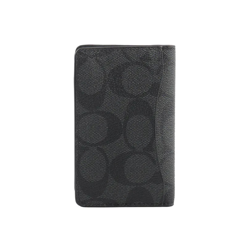 鞋教 COACH 經典 LOGO 老花布料皮革4卡短夾名片夾 炭黑色 CJ753 / QBMI5