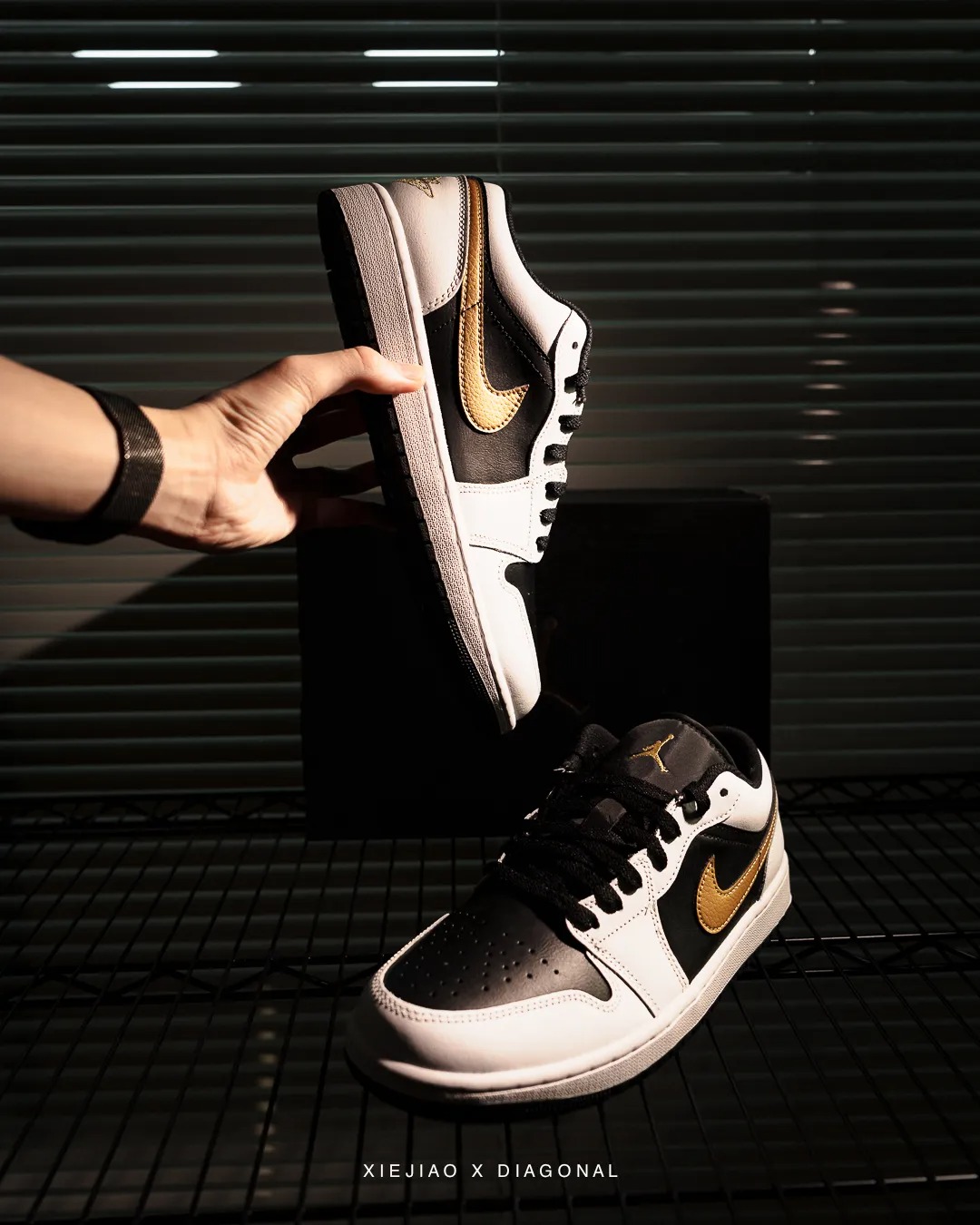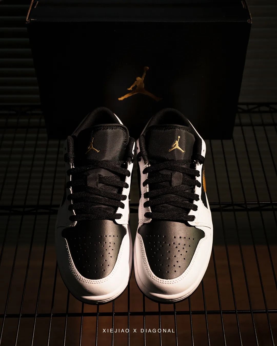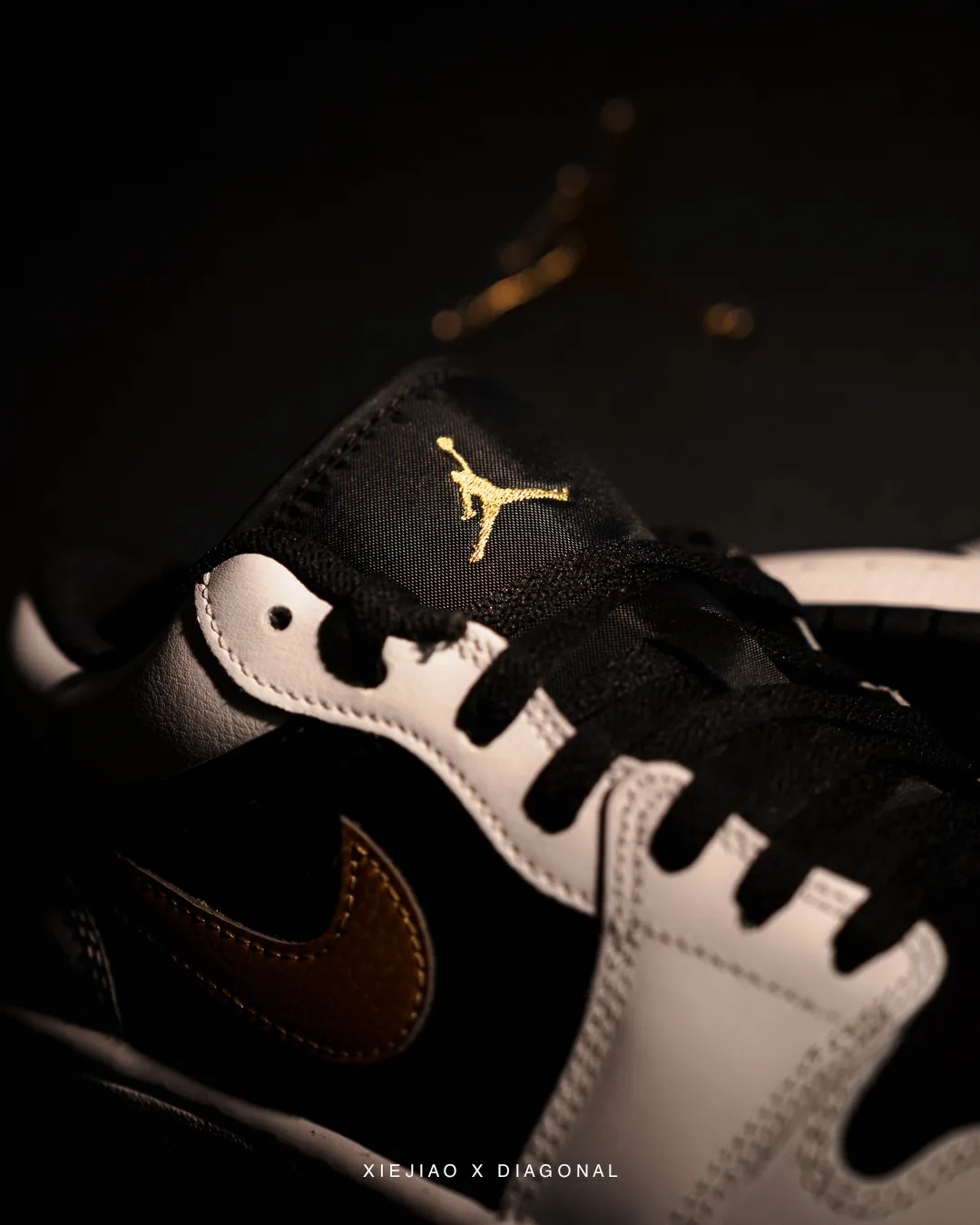 鞋教 Nike Air Jordan 1 Low "White Black Metallic Gold Swoosh" 黑金 反轉熊貓 553558-172